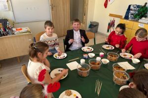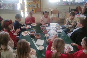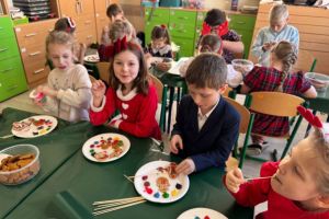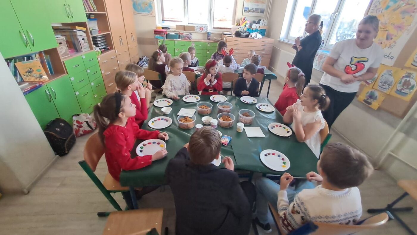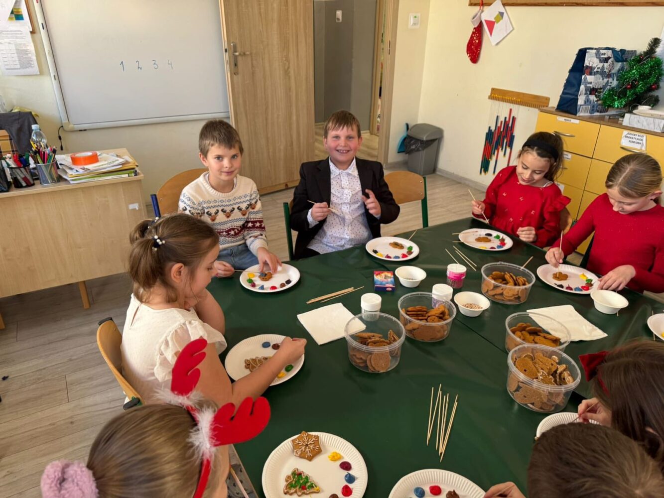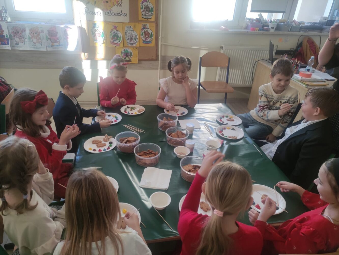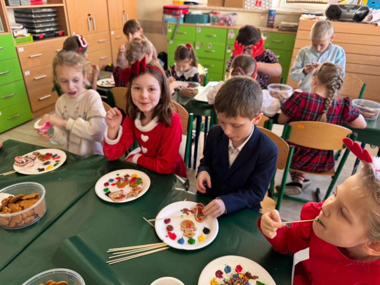 Po apelu w świątecznej atmosferze odbyły się spotkania klasowe. Dodatkowo klasa I i II wzięła udział w warsztatach zdobienia pierniczków.