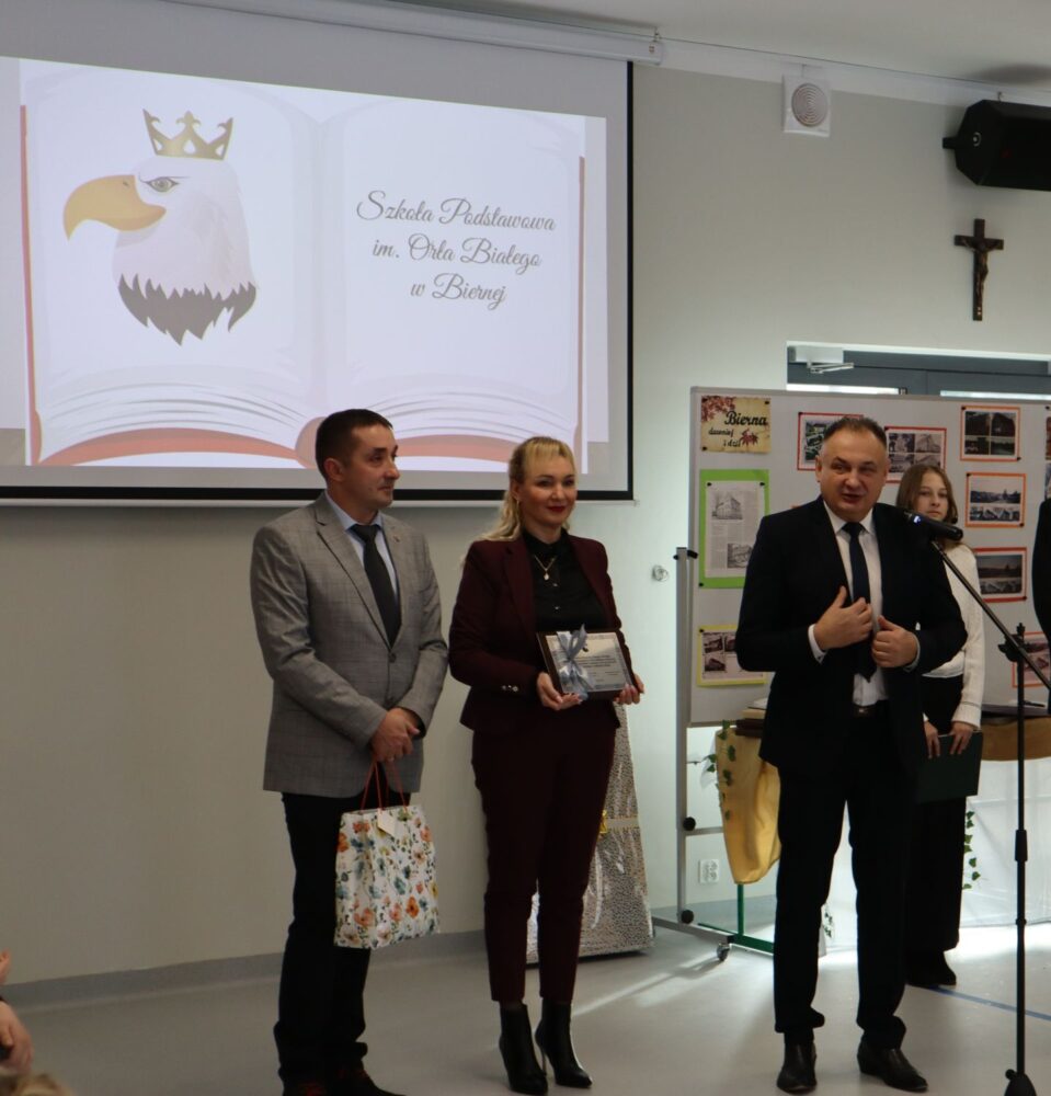 W dniu 28 listopada podczas Święta Szkoły Podstawowej im. Orła Białego w Biernej odbyło się uroczyste otwarcie nowego skrzydła placówki. Podczas uroczystości nie zabrakło słów uznania – głos zabierali zaproszeni goście. Poświęcenia nowego skrzydła szkoły dokonał Ksiądz Proboszcz A. Wojciechowski. Następnie odbyło się uroczyste przecięcie wstęgi i wręczenie przez Wójta Gminy Sulików symbolicznego klucza na ręce Pana Dyrektora Dariusza Kołodziejczyka i uczniów naszej szkoły.