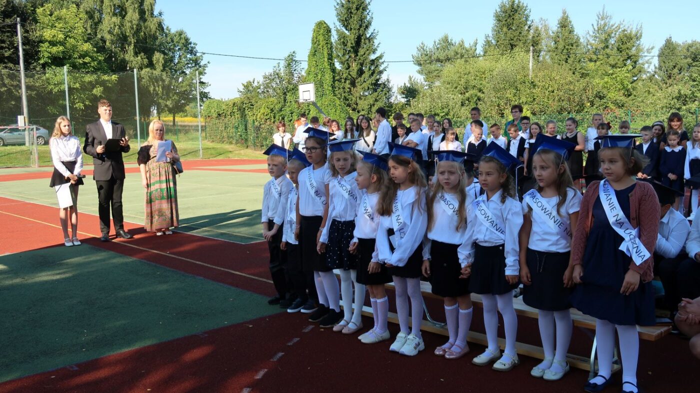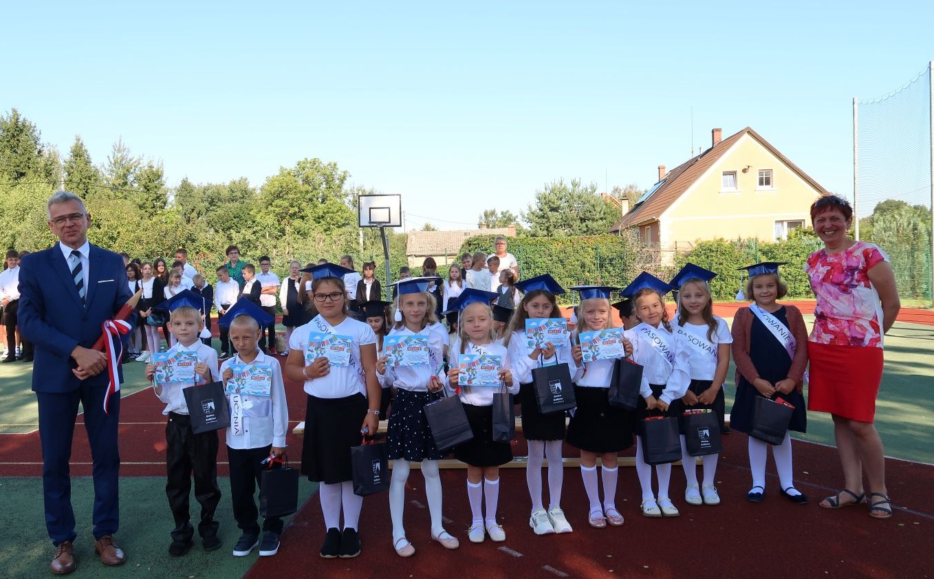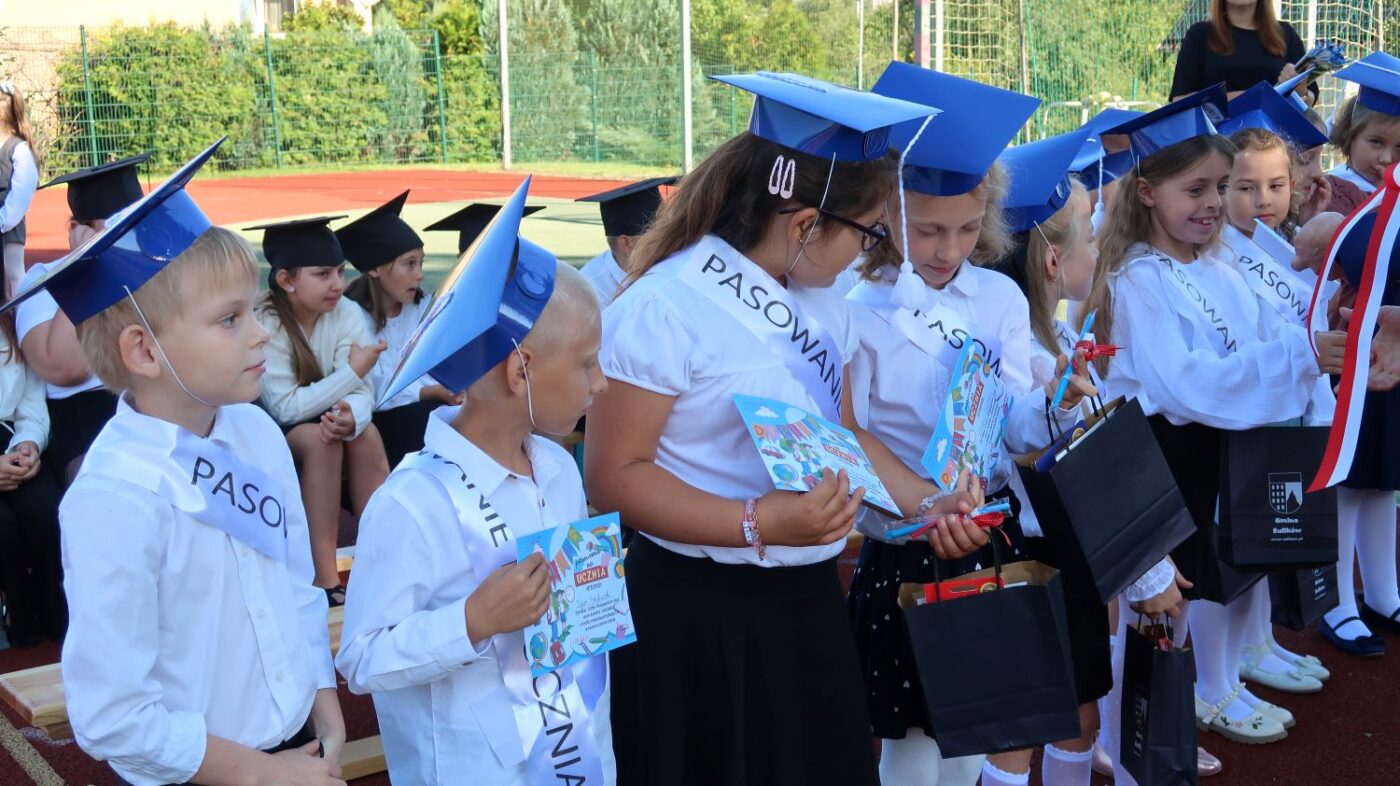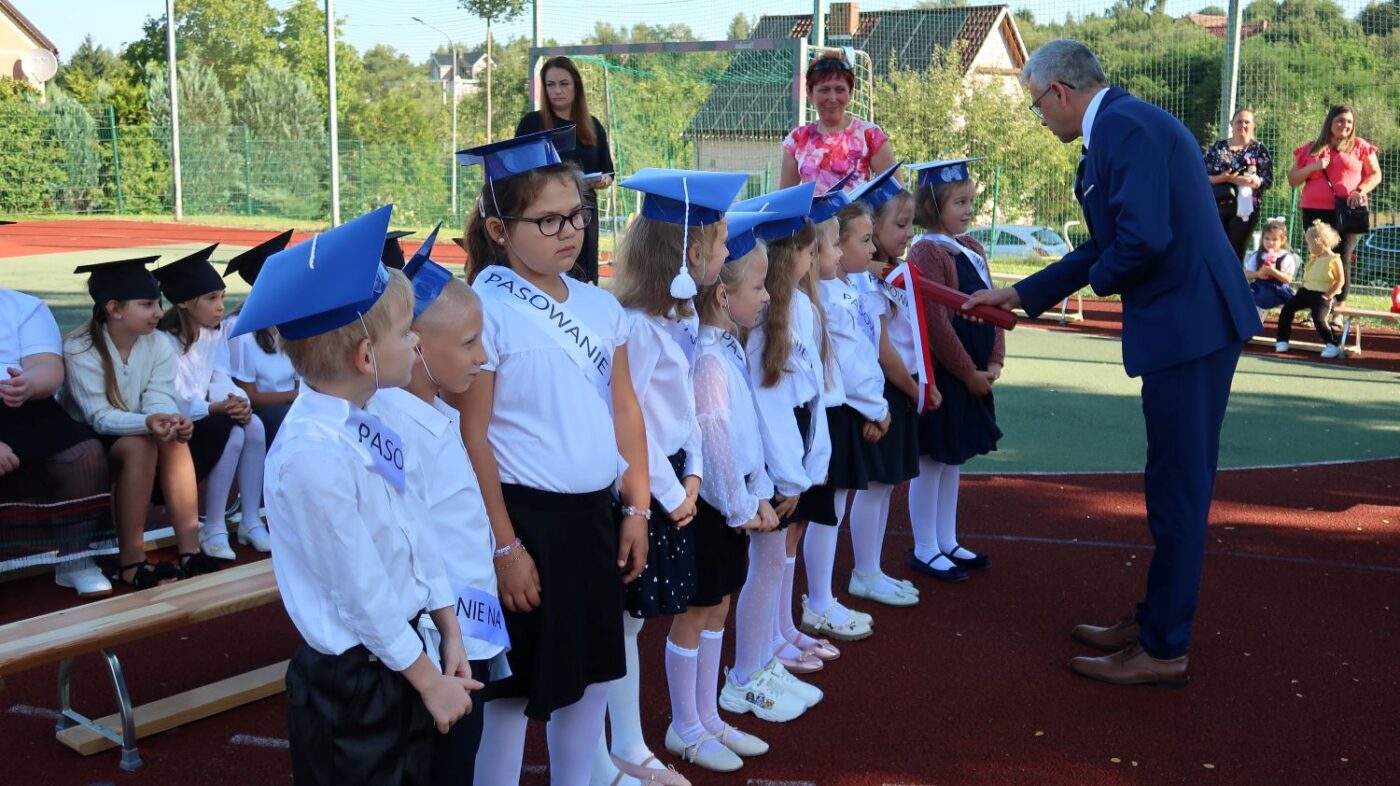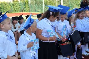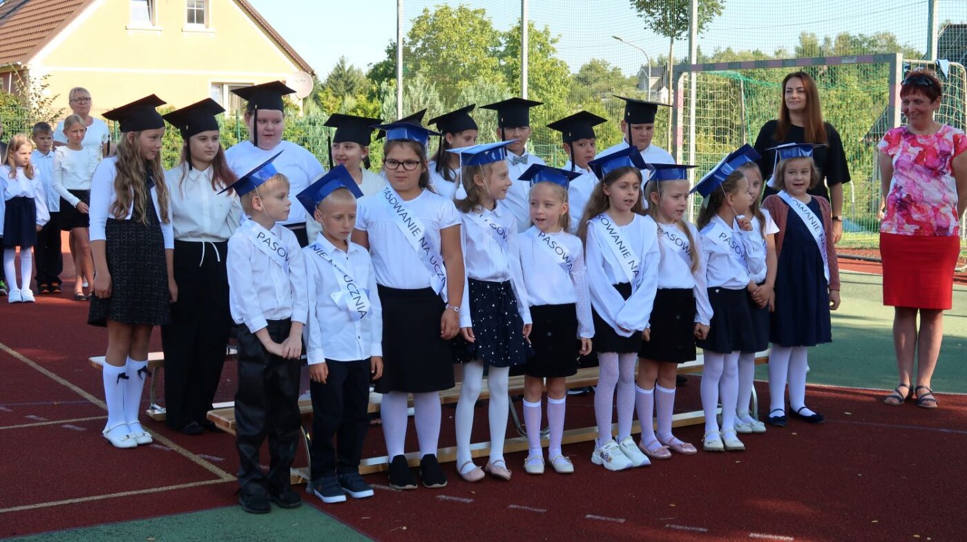W tym dniu tradycyjnie odbyło się pasowanie na „pierwszaka i sztubaka”. Uczniowie klasy I i IV zaprezentowali krótkie wiersze, a Pan Dyrektor Dariusz Kołodziejczyk pasował ich na uczniów. Następnie otrzymali pamiątkowe dyplomy oraz drobne upominki, które będą im przypominać o tym wyjątkowych dniu.