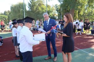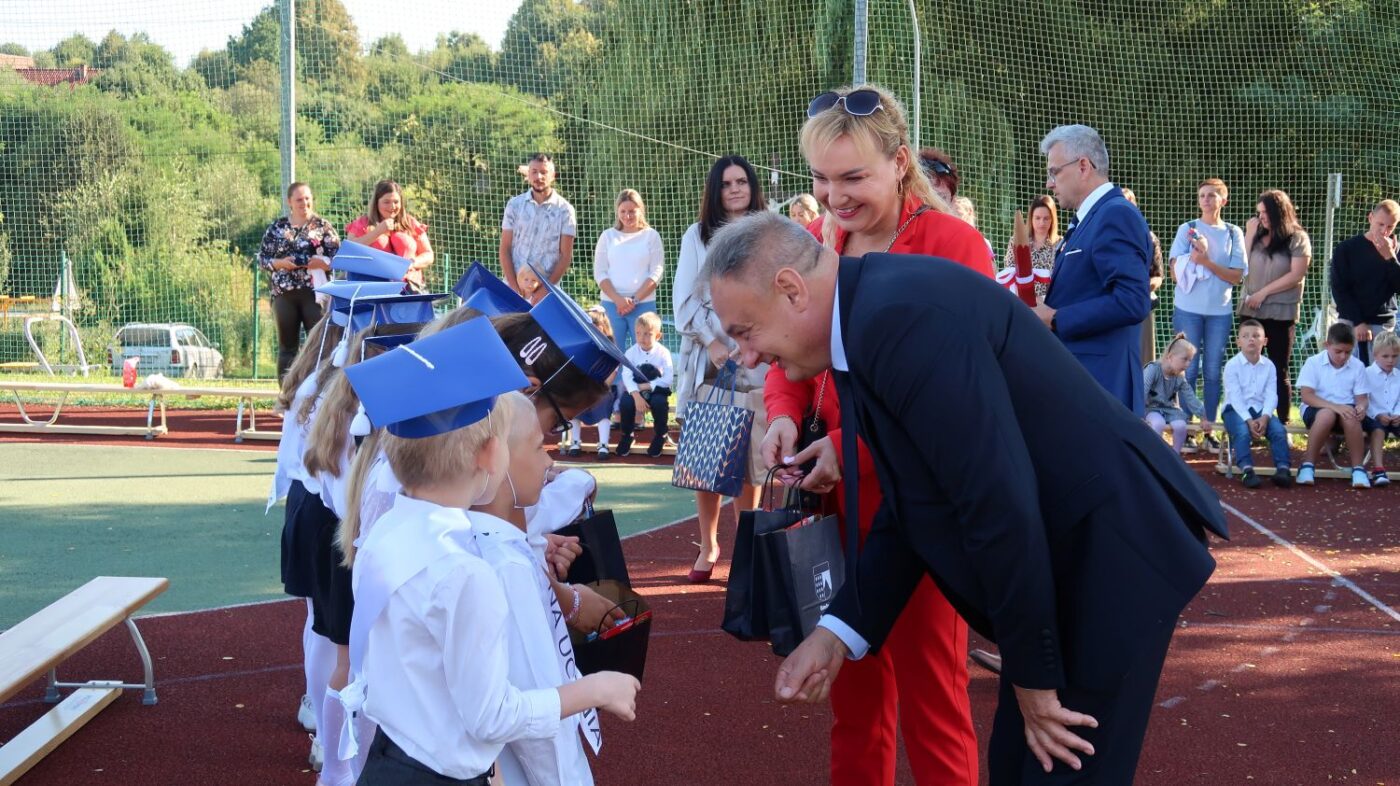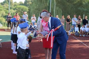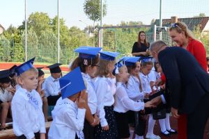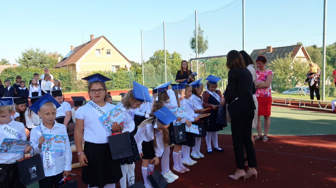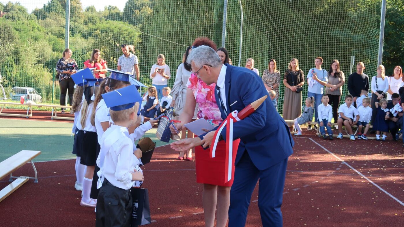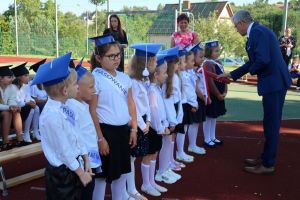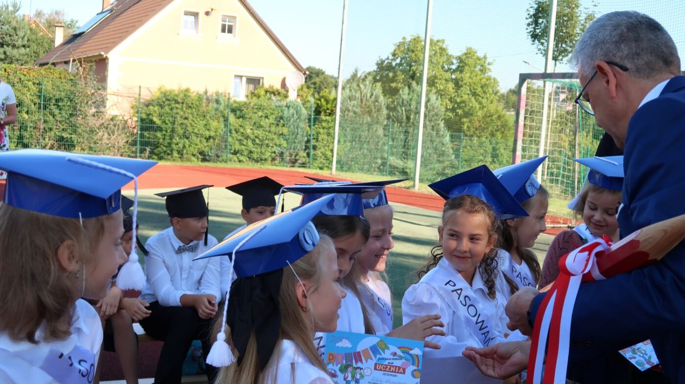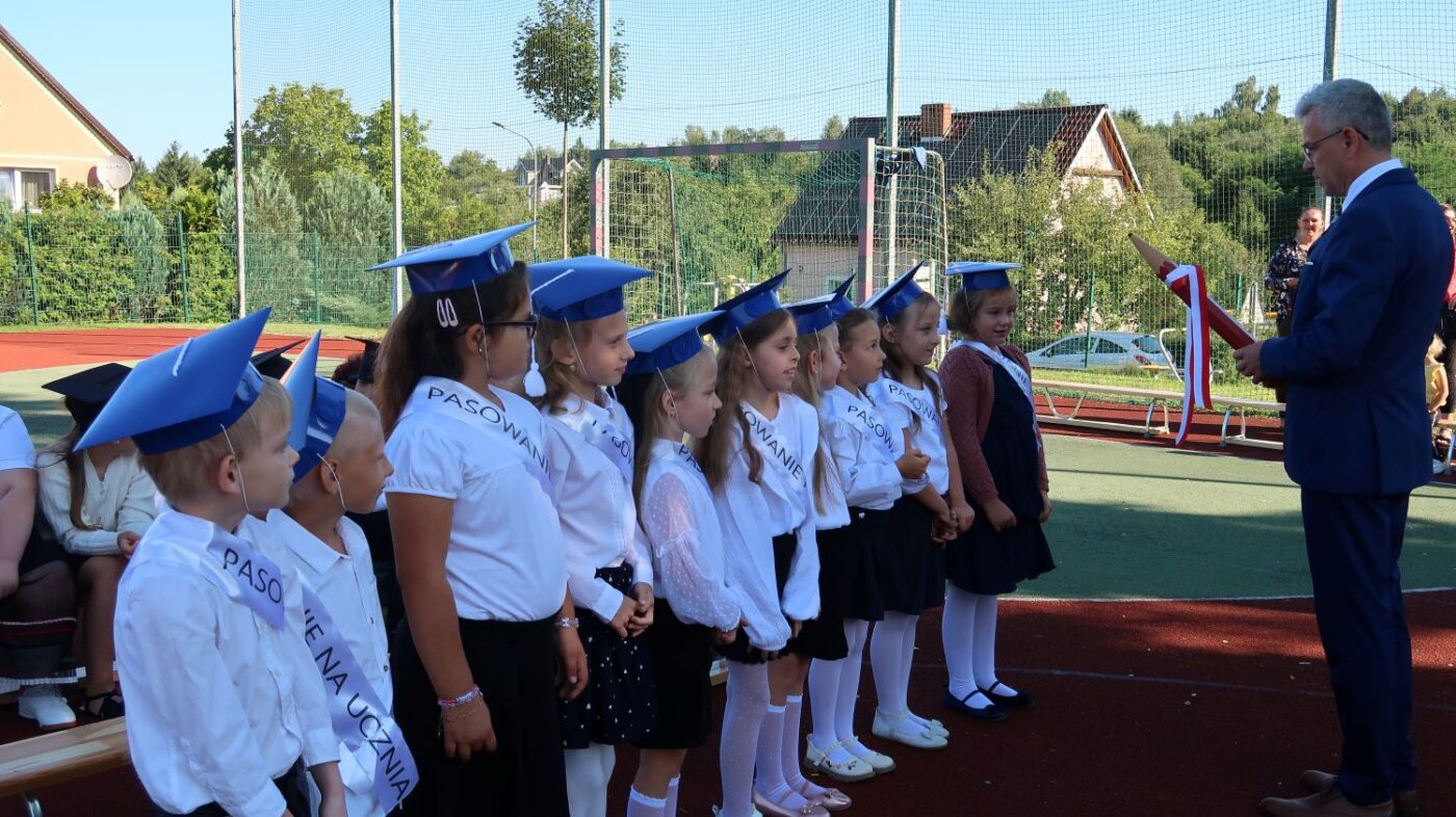 W tym dniu tradycyjnie odbyło się pasowanie na „pierwszaka i sztubaka”. Uczniowie klasy I i IV zaprezentowali krótkie wiersze, a Pan Dyrektor Dariusz Kołodziejczyk pasował ich na uczniów. Następnie otrzymali pamiątkowe dyplomy oraz drobne upominki, które będą im przypominać o tym wyjątkowych dniu.
