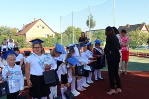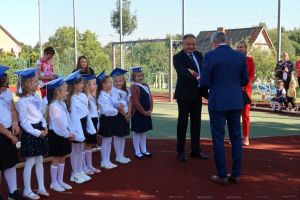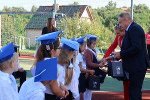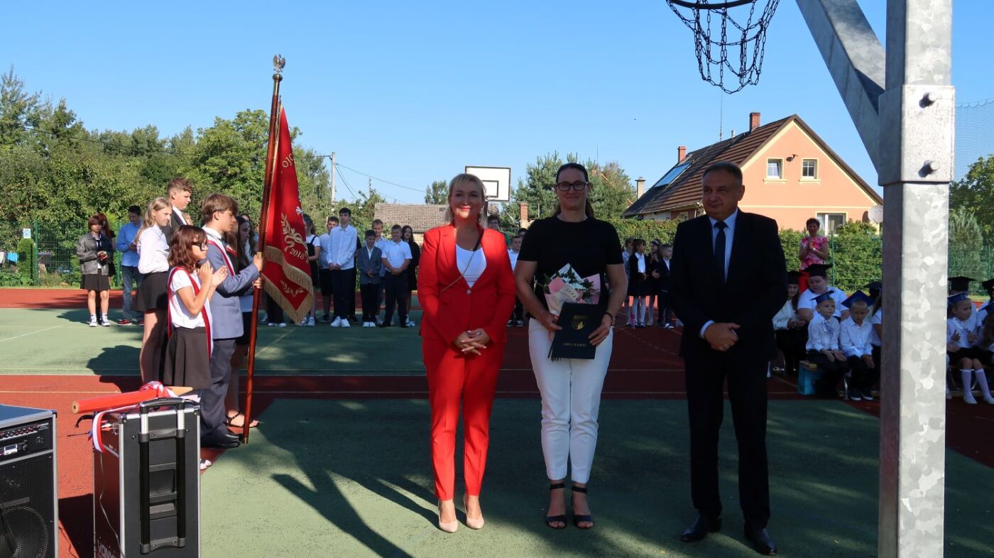 Pan Wójt Jan Majowski oraz Pani Wójt Barbara Dunaj wręczyli Pani Izabeli Łyczkowskiej i Sabinie Majewskiej akt nadania stopnia awansu zawodowego na stopień nauczyciela mianowanego oraz wręczyli drobne upominki dla pierwszoklasistów.