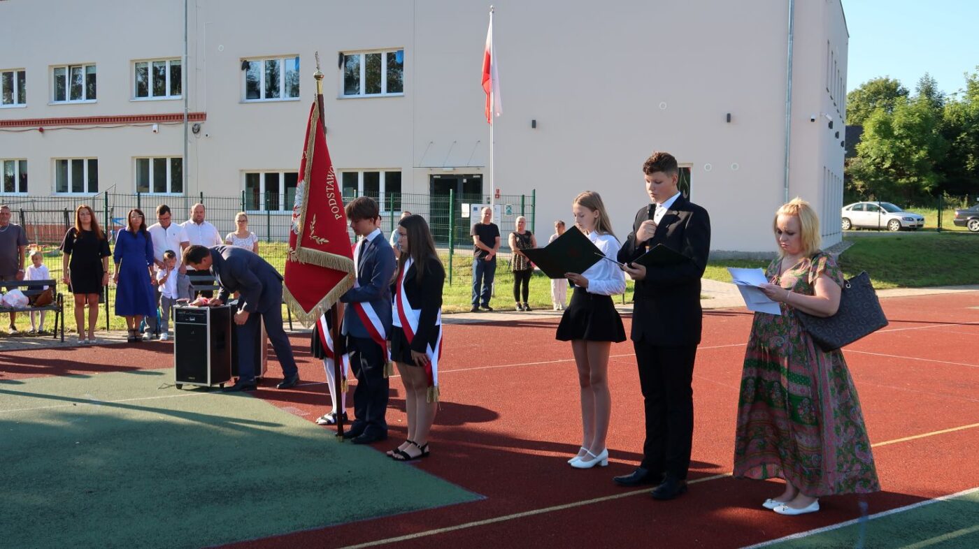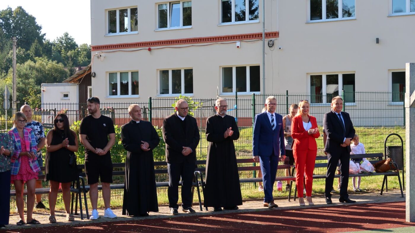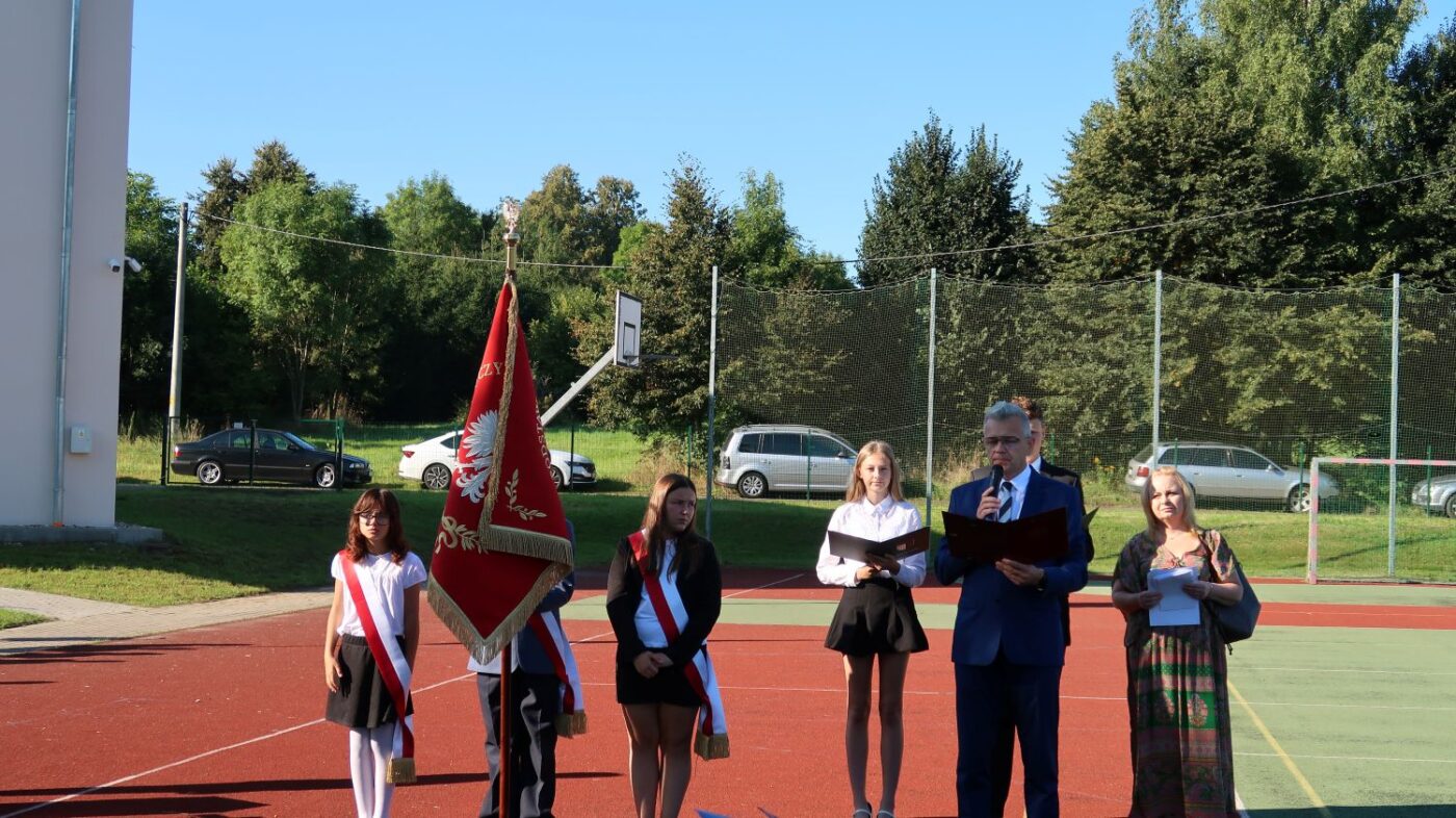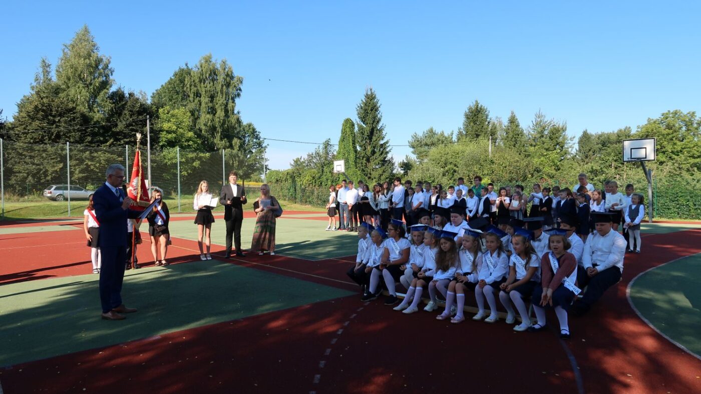 O 9.00 cała społeczność szkolna rodzice oraz zaproszeni goście spotkali się na boisku szkolnym, gdzie odbyły się uroczystości inaugurujące rok szkolny 2025/2026.