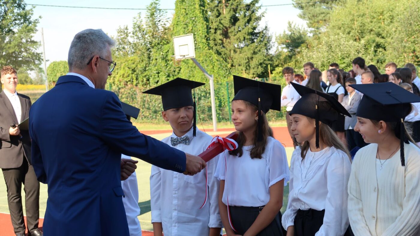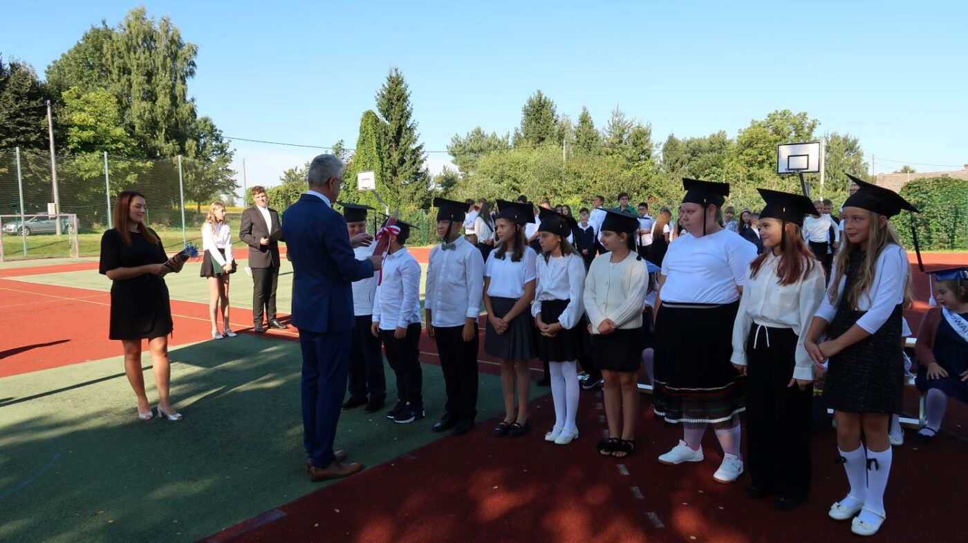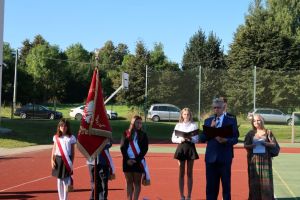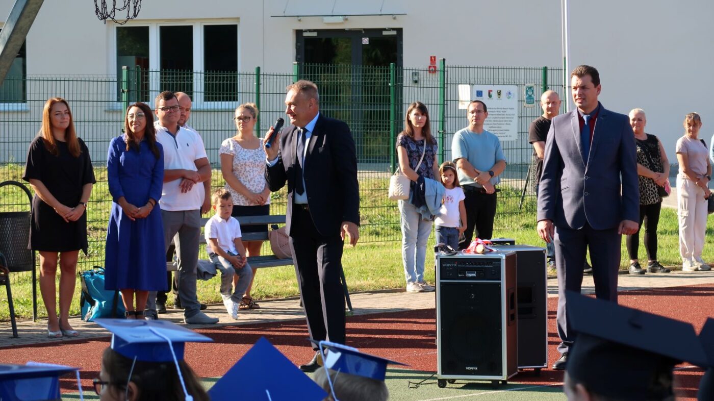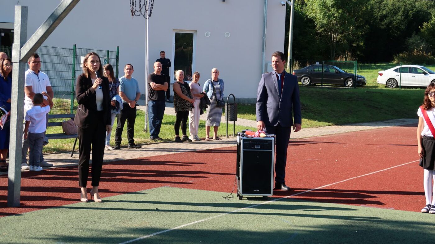 O 9.00 cała społeczność szkolna rodzice oraz zaproszeni goście spotkali się na boisku szkolnym, gdzie odbyły się uroczystości inaugurujące rok szkolny 2025/2026.