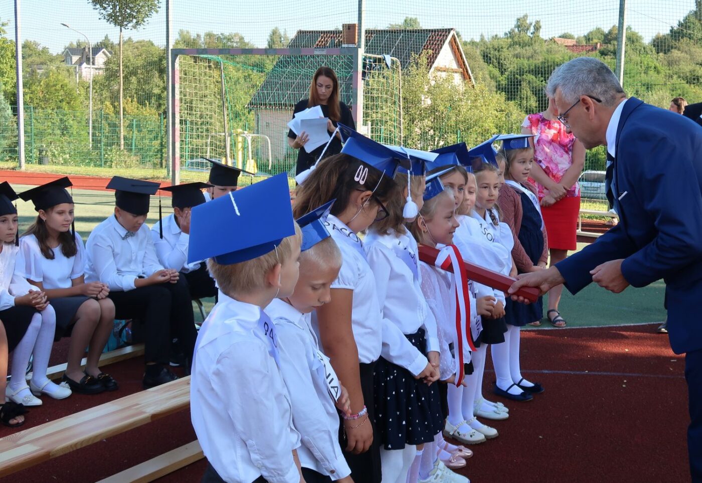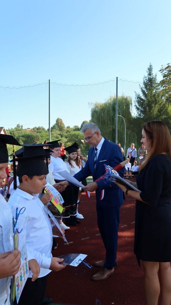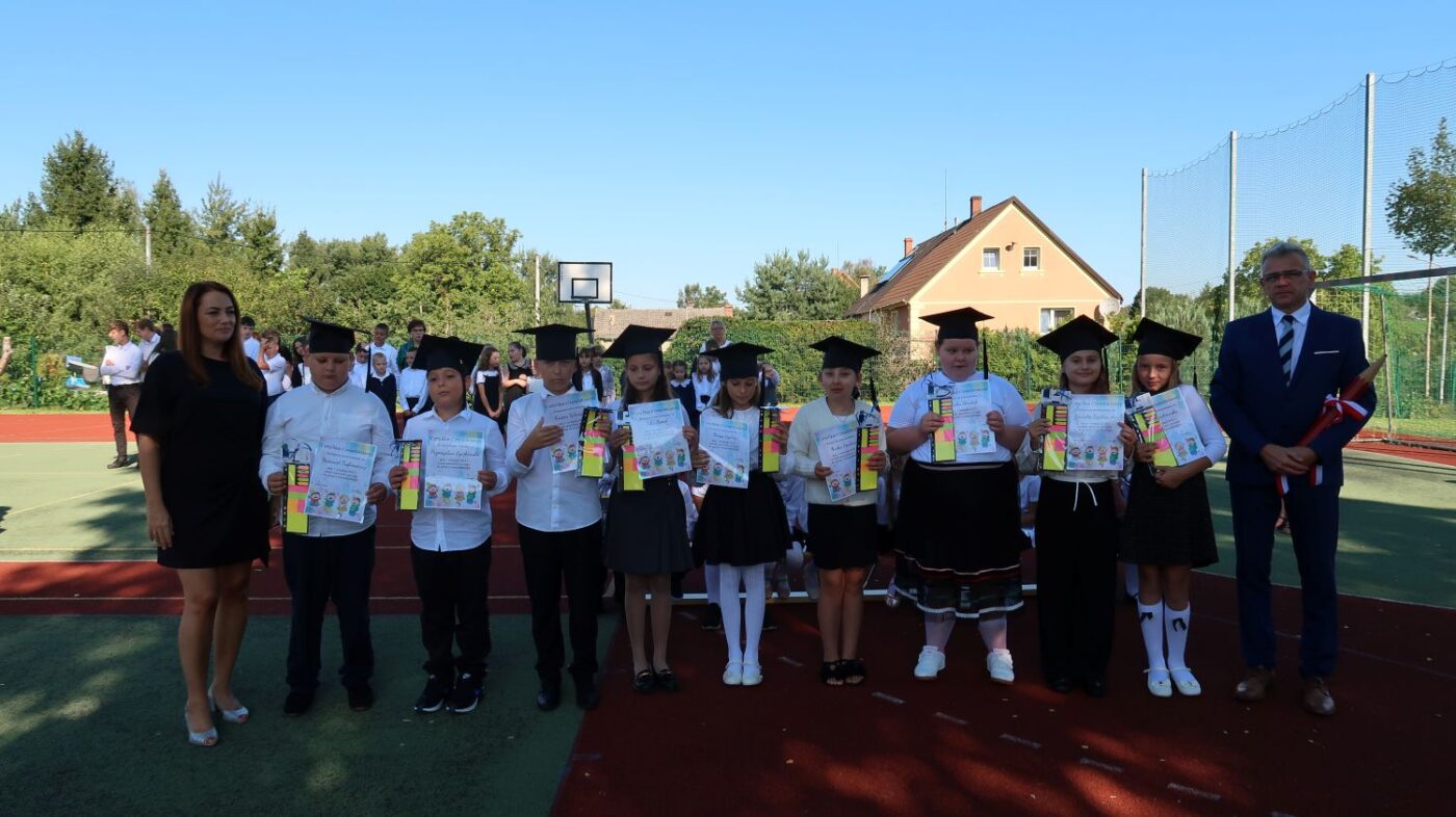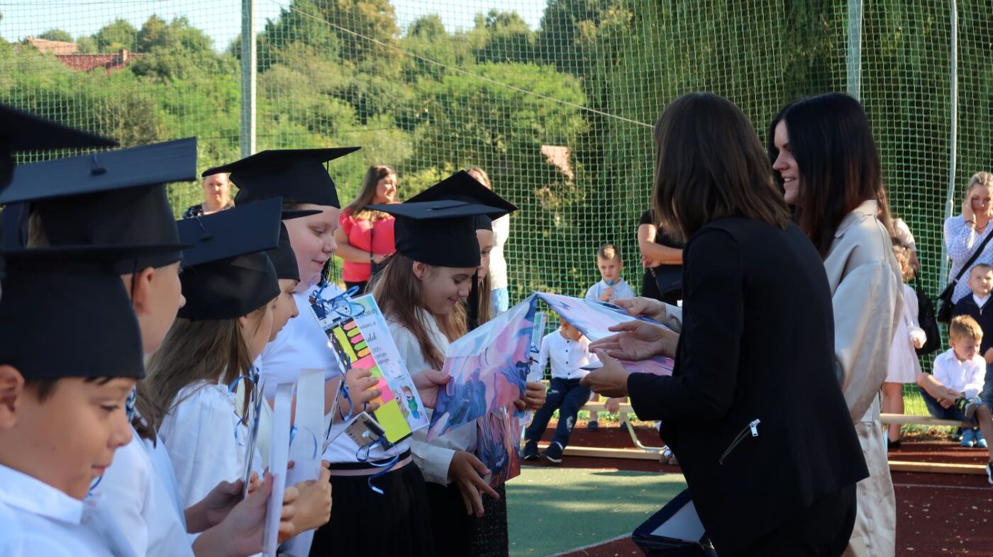 O 9.00 cała społeczność szkolna rodzice oraz zaproszeni goście spotkali się na boisku szkolnym, gdzie odbyły się uroczystości inaugurujące rok szkolny 2025/2026.