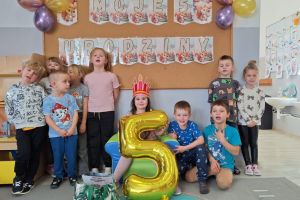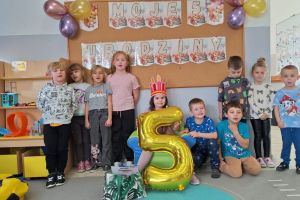 W dniu 5 urodzin serdeczne życzenia składają Wiewióreczki.