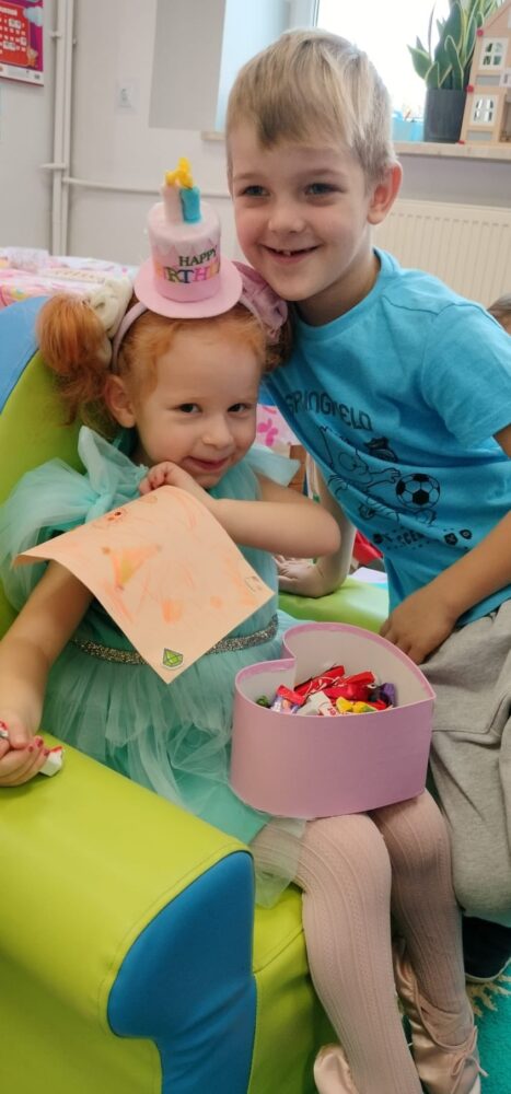 Najlepsze życzenia urodzinowe składają koleżanki i koledzy z grupy „Misie” i „Wiewióreczki” oraz wychowawczynie