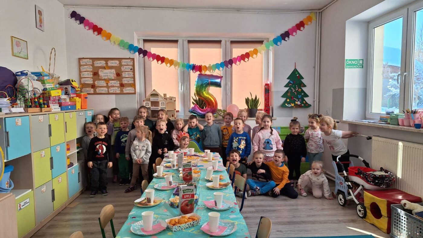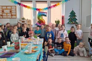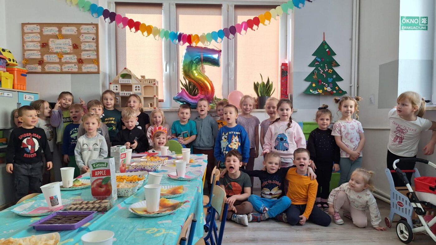 Serdeczne życzenia z okazji 5-tych urodzin składają Wiewióreczki i Pszczółki