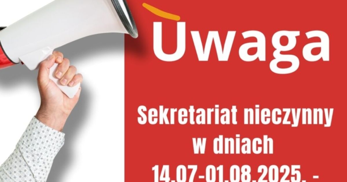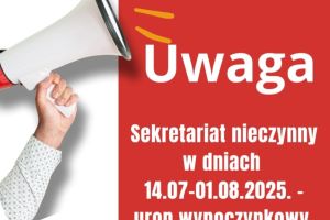 Sekretariat nieczynny w dniach 14.07-01.08.2025. – urop wypoczynkowy.