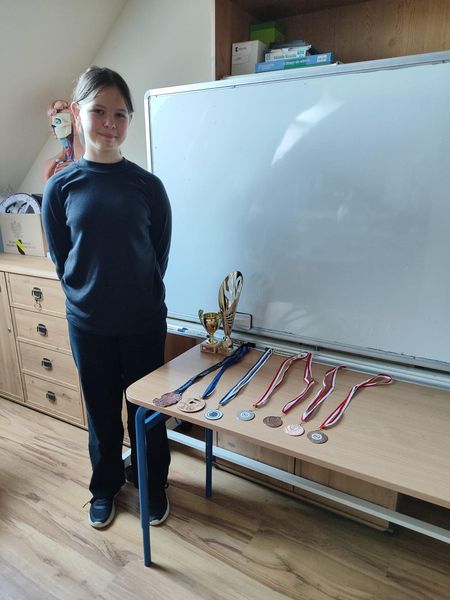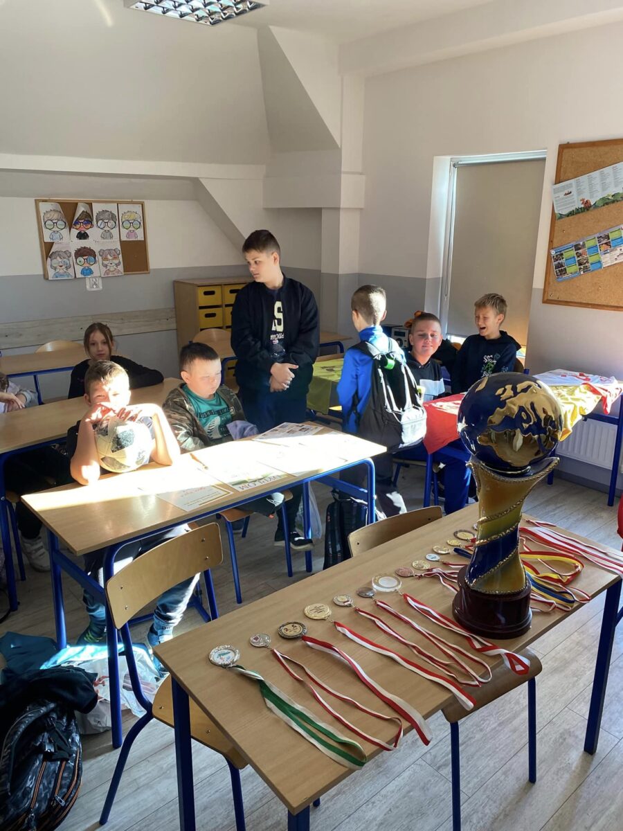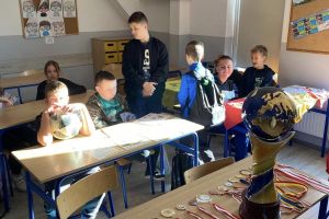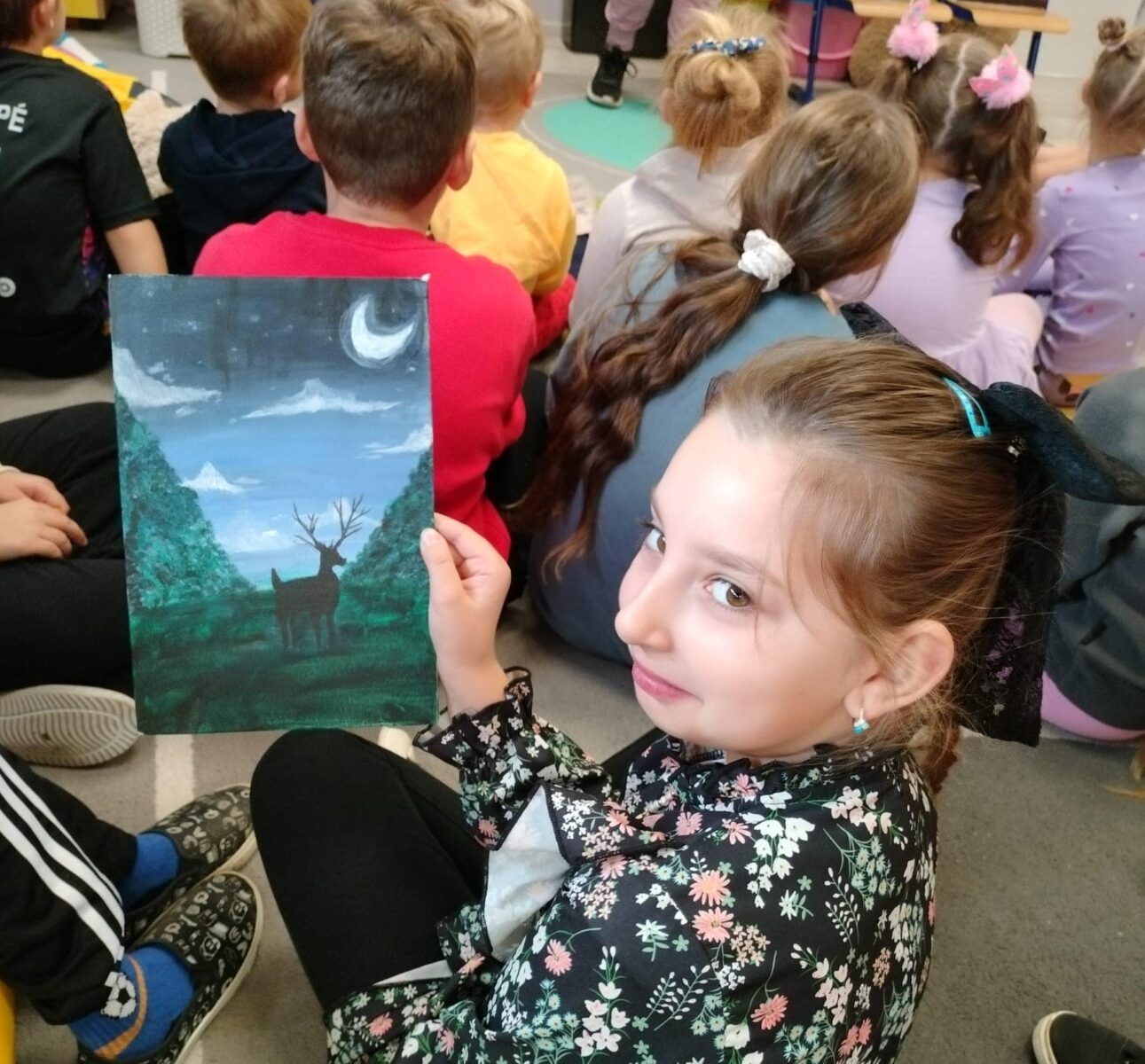 Nikola najmłodszym zaprezentowała prace malarskie, a Amelka swoje medale ze sportów walki – karate olimpijskie 🥋.