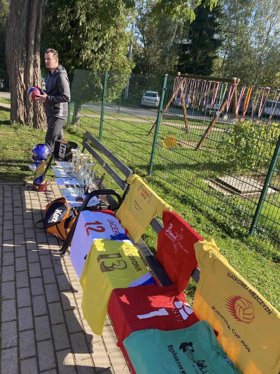 Pan Jacek ze swoimi trofeami i nagrodami w turniejach siatkarskich oraz innych sportowych.
