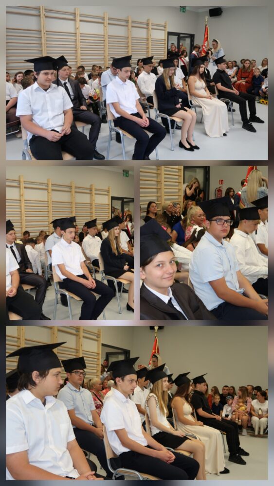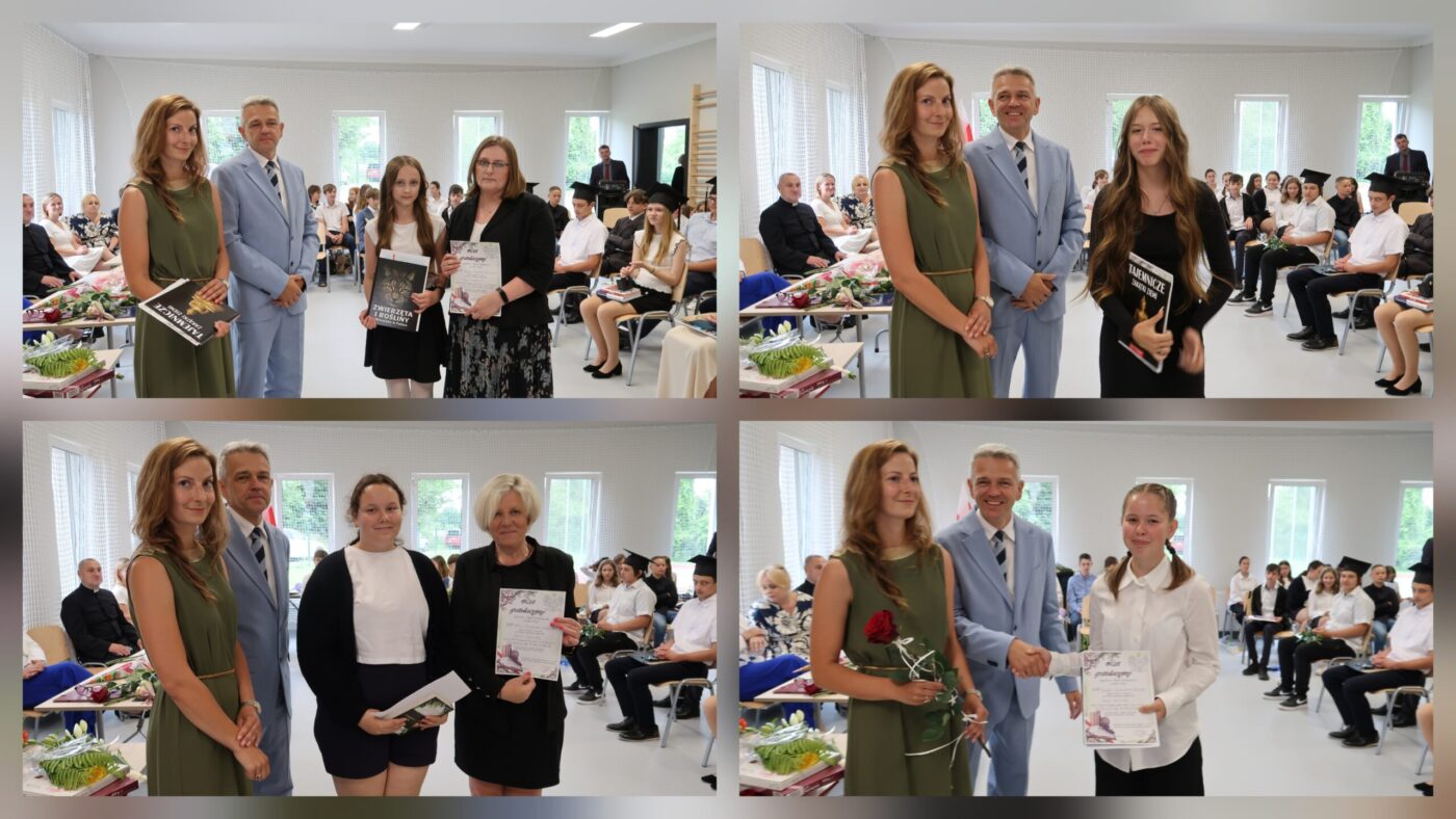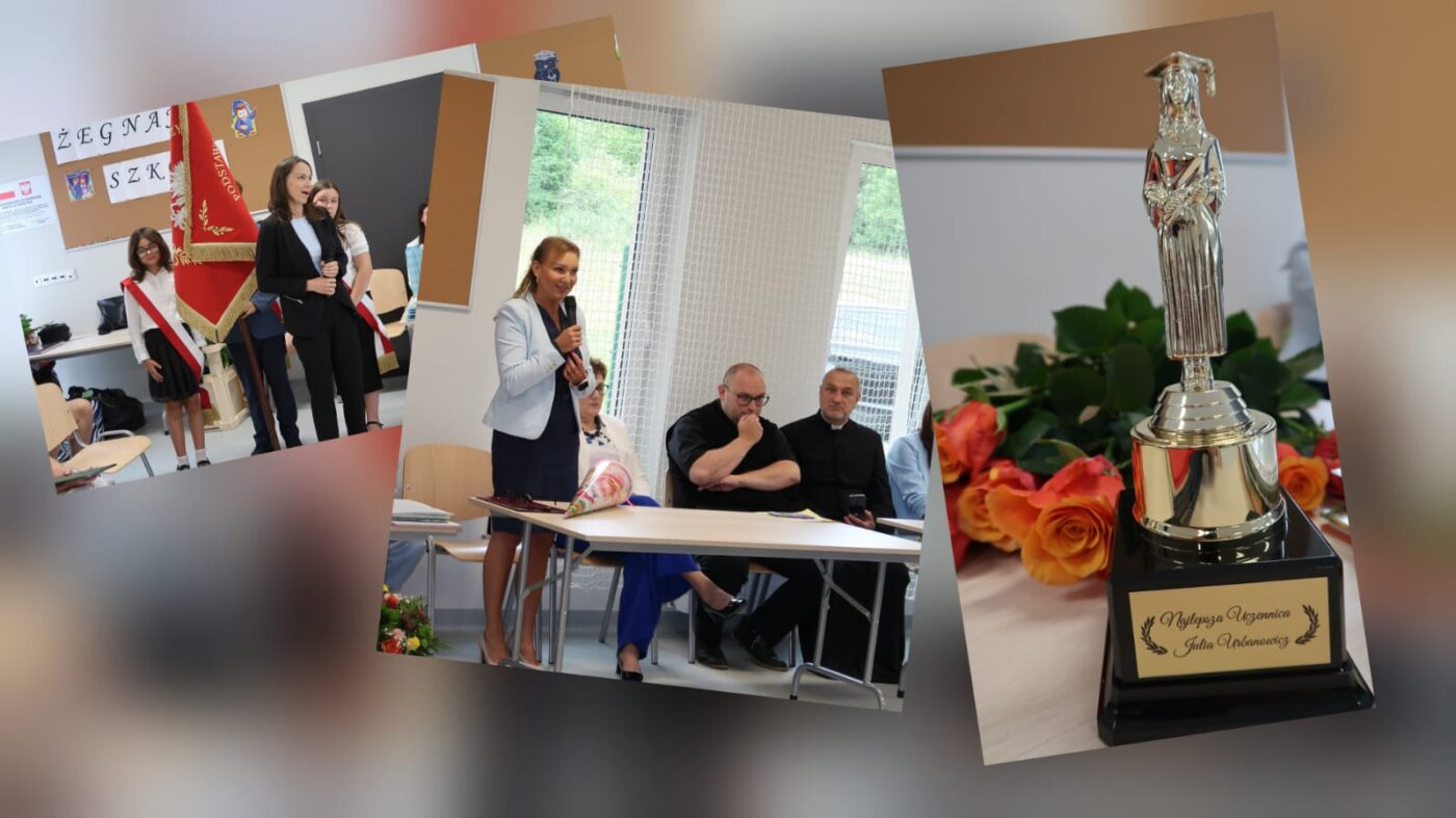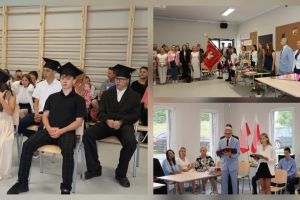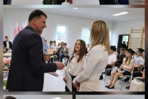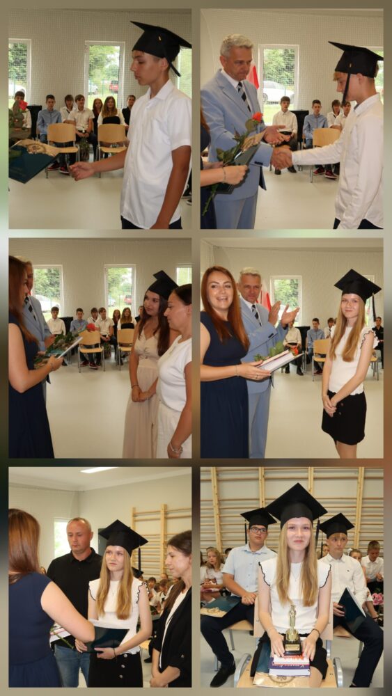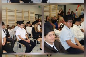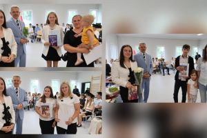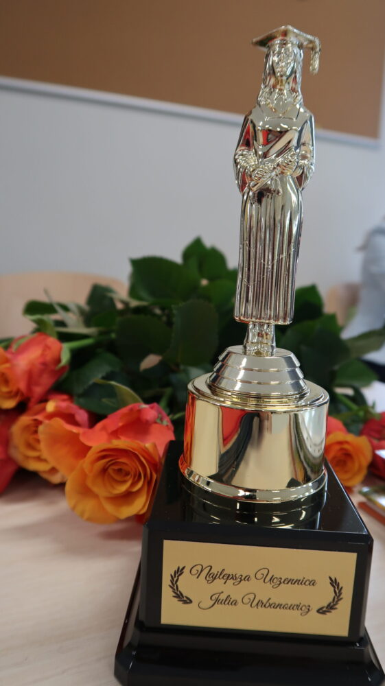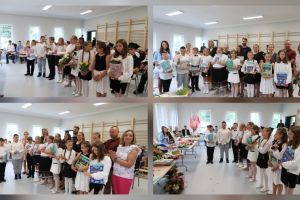 Na początku pożegnano uczniów klasy 8, którzy otrzymali od dyrektora i wychowawcy świadectwa i wyróżnienia. Dodatkowo Julia Urbanowicz otrzymała statuetkę najlepszej uczennicy.